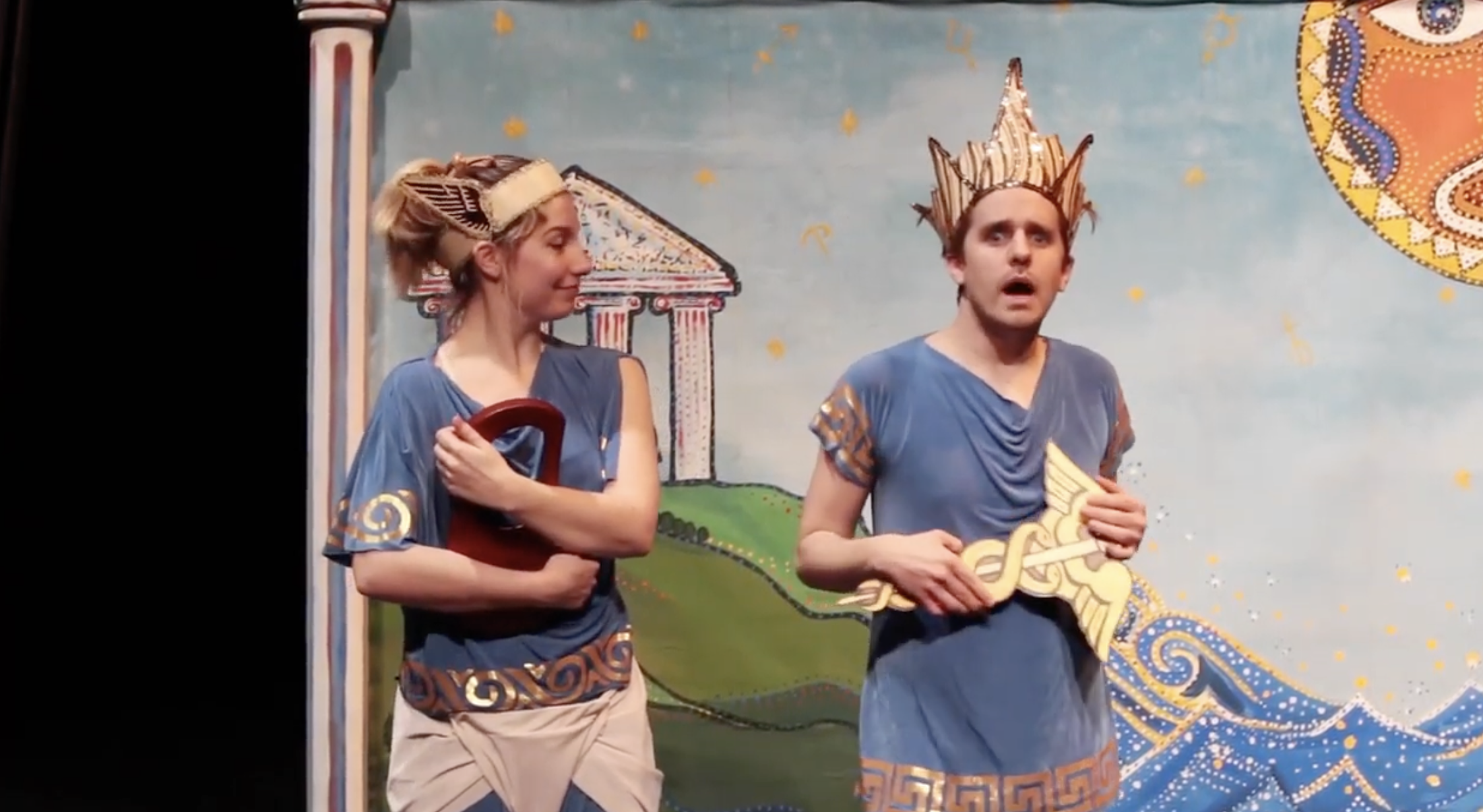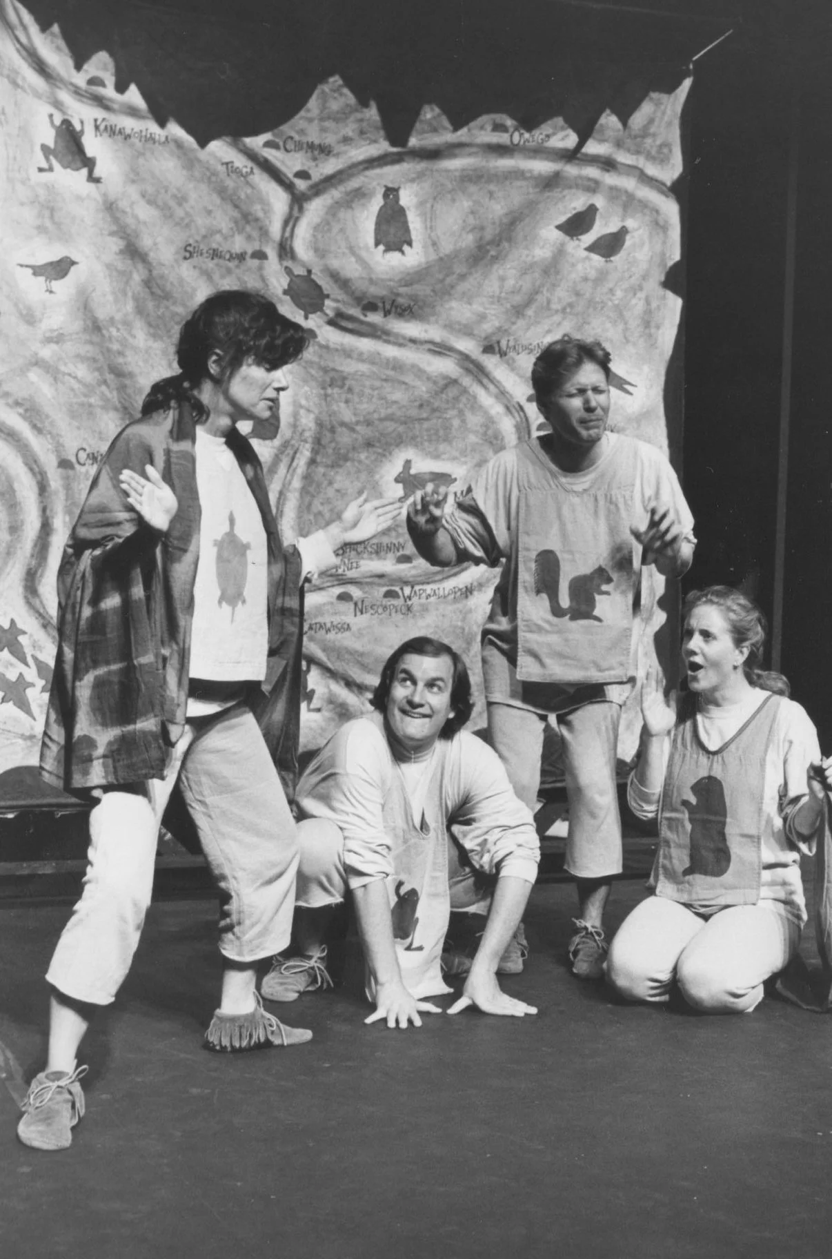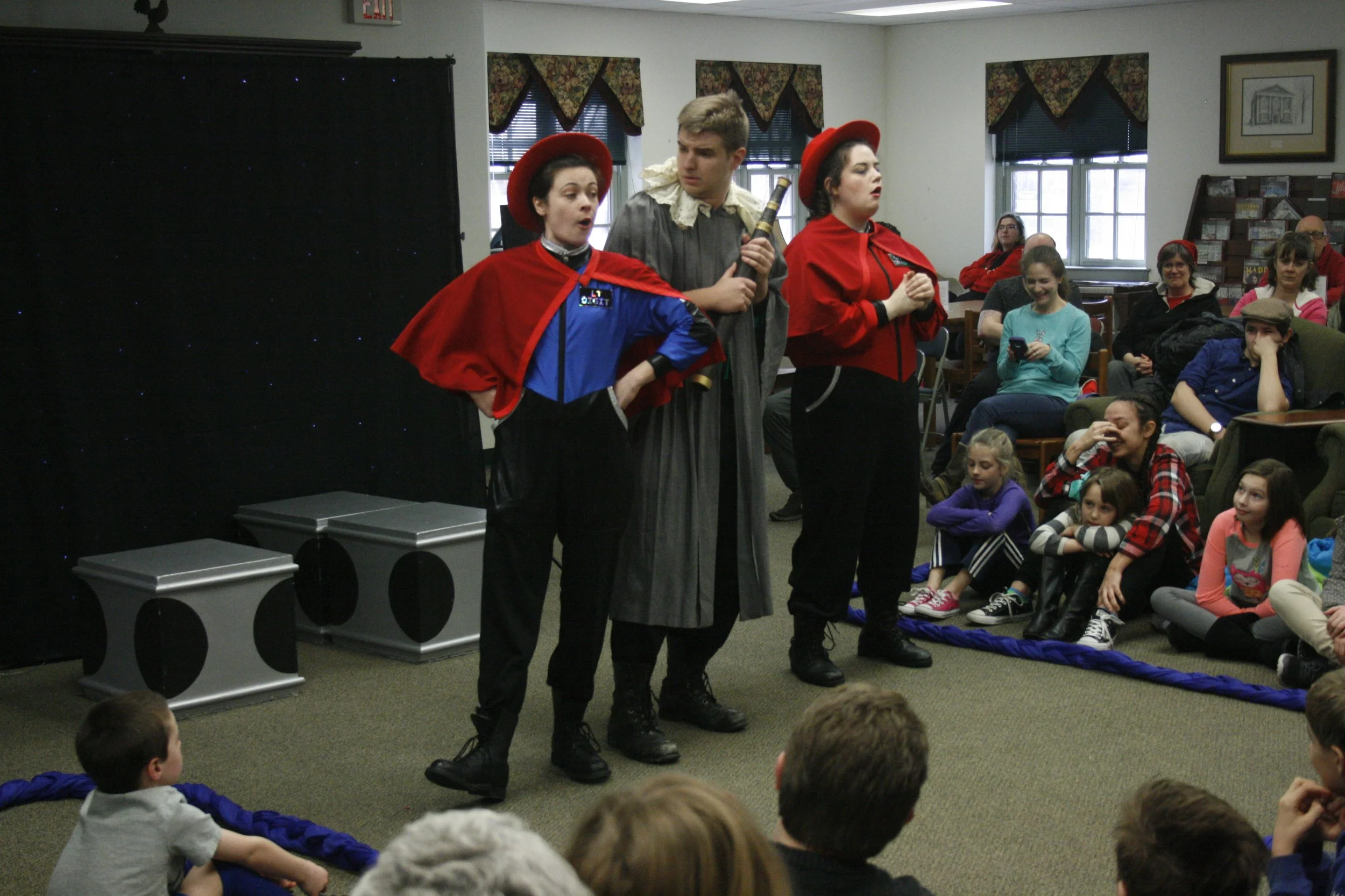 Professional actors play multiple characters and create different locations and moods through the imaginative use of props and costumes;